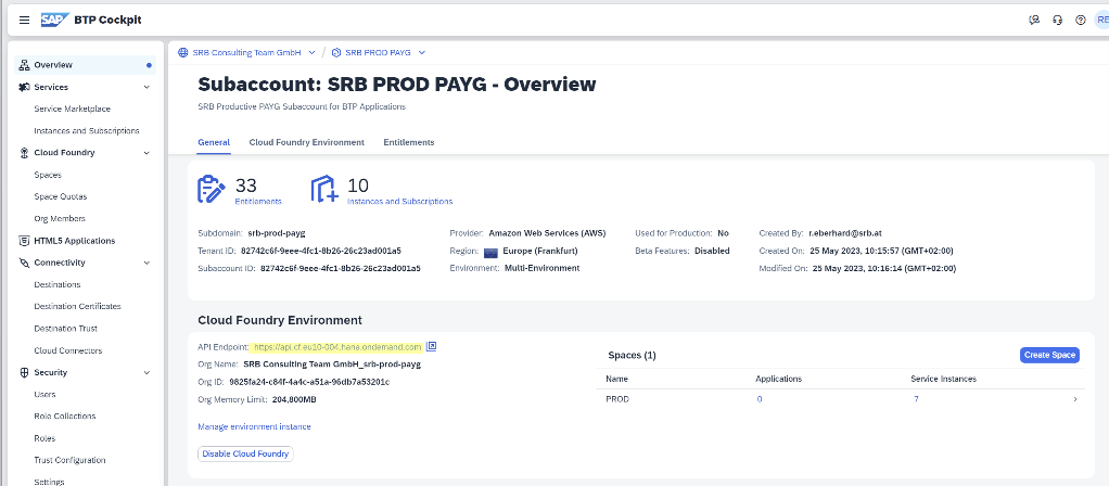 - Richten Sie Cloud Foundry oder Kyma inklusive aller Berechtigungen ein! Wählen Sie die passende Umgebung in der SAP BTP aus, um Ihre Anwendungen zu hosten. Cloud Foundry ist eine Standardumgebung für eine containerbasierte Entwicklung und den Betrieb von Anwendungen, während Kyma eine Kubernetes-basierte Umgebung ist, die mehr Flexibilität bietet.