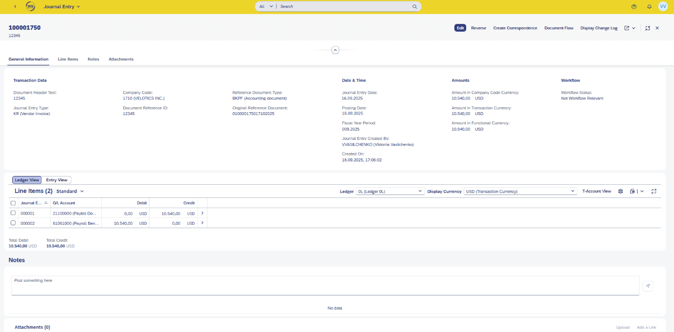 Von hier aus kann man bereits einen Drilldown in den Beleg machen – Journal Entry App.